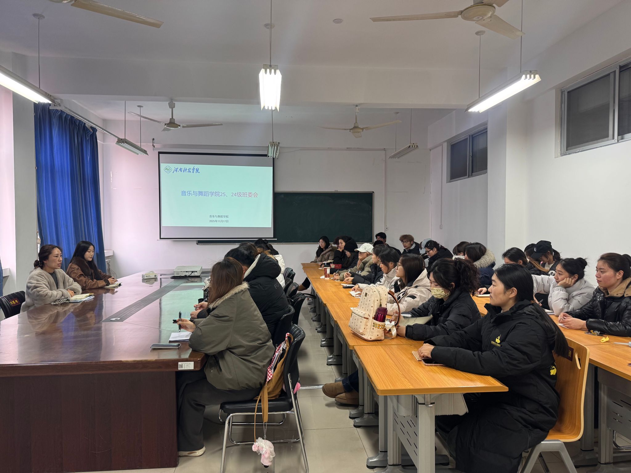 为加强班级自主管理,加强学生骨干队伍建设,明晰班委职责使命,夯实班级管理根基,11月17日中午,音乐与舞蹈学院在8号楼8508会议室召开班委工作部署暨能力提升会议。会议由团委书记左玉含主持,全体2024级、2025级班干部参加了会议。