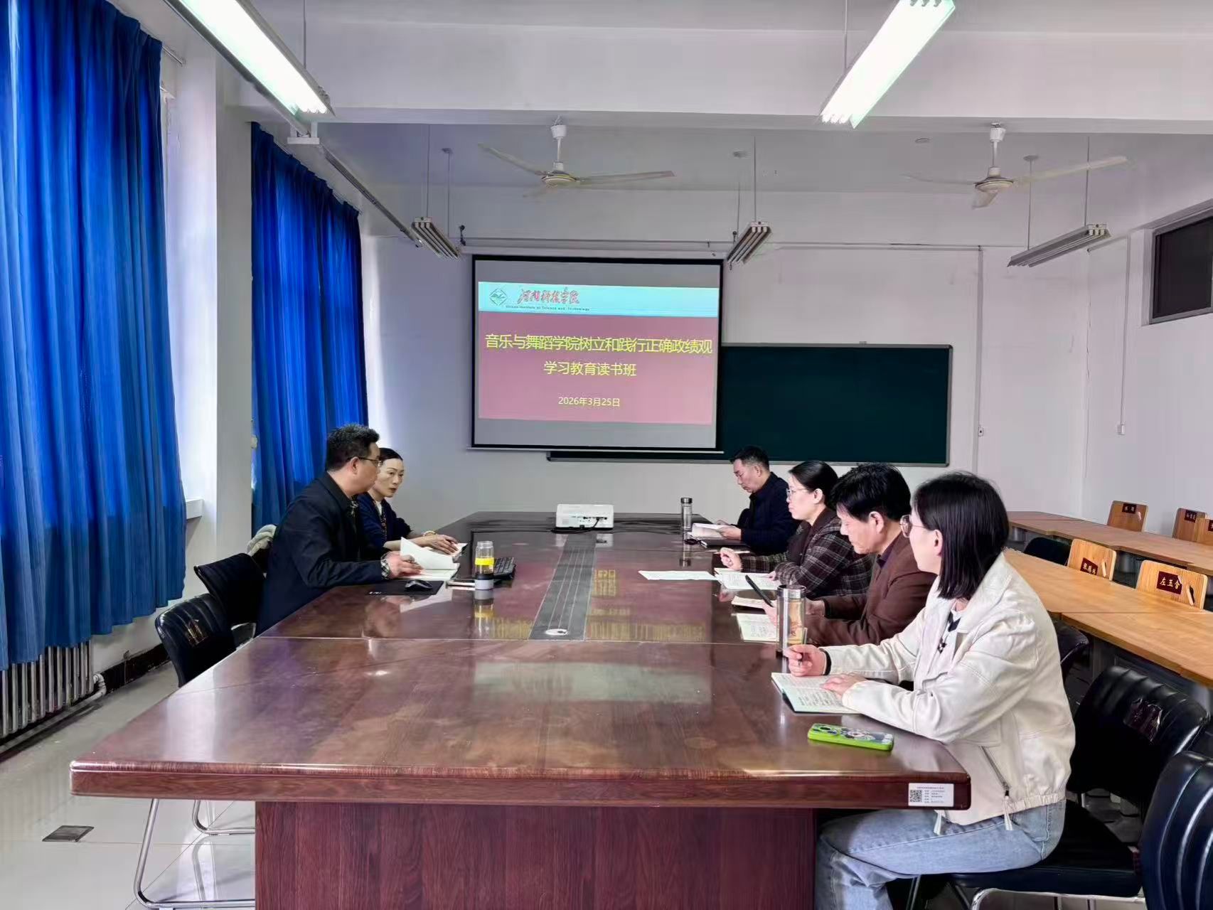 3月25日下午,音乐与舞蹈学院举办树立和践行正确政绩观学习教育读书班。学院班子成员参加,党委书记魏军鹏主持。